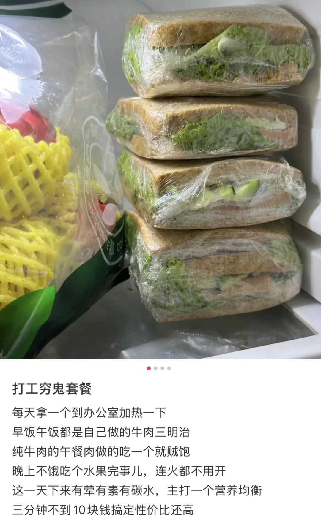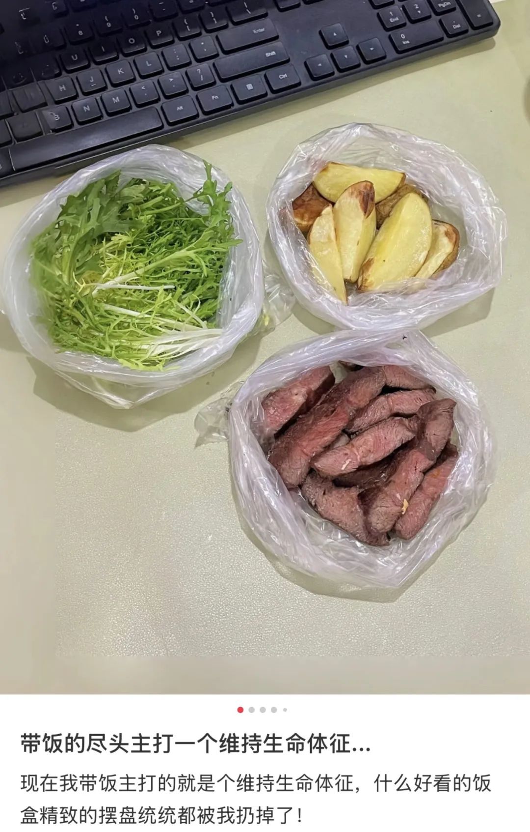 在自帶飯的“省錢自救”中,脆皮年輕人不斷鑽研營養學——講究每頓飯的碳水、蛋白質、蔬菜配比的同時,也慢慢走上了養生之路。