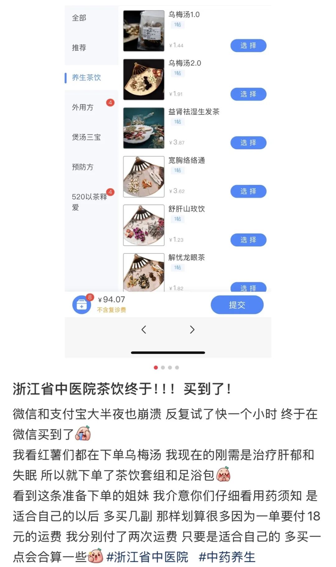 浙江省中醫院的中藥飲,更是讓年輕人直接買到小程序都徹底崩潰。