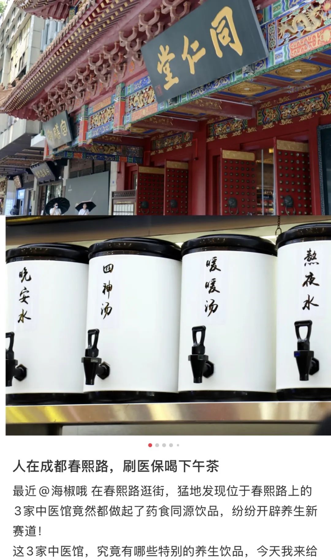 成都市各大中醫館,陸續推出藥食同源的養生飲品,還將店開到了春熙路。