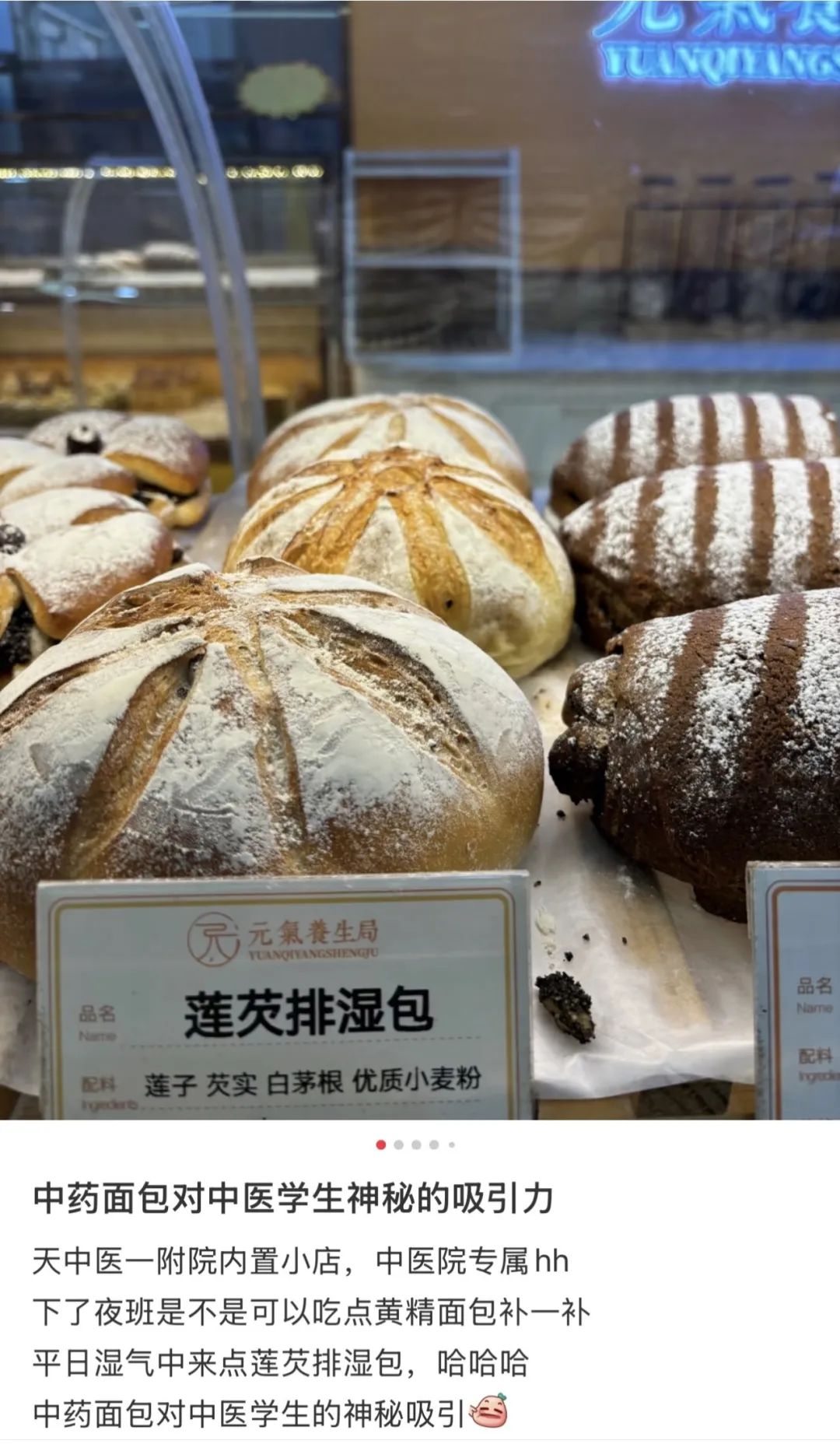 天津中醫院的“藥食同源”中式麪包,有蓮芡排濕包、荷葉消暑包、黃芪養生包、枸杞原漿牛角包、陳皮肉桂蘋果酥……聽名字就覺得養生;
