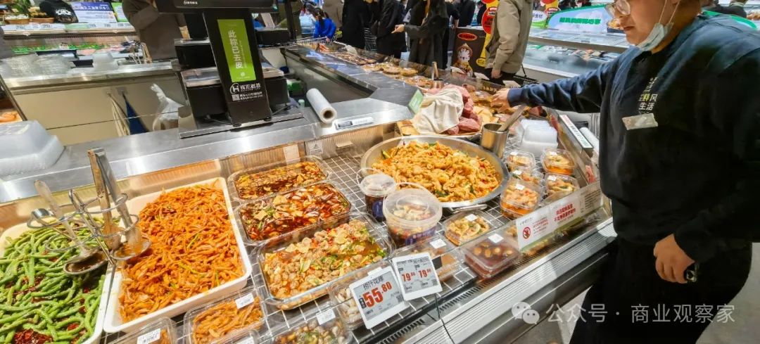 而當下中國實體超市行業的一個最大時機機會與發展方向,就是基於工業化生產的熟食來打造超市煙火氣的食品館業務,正處於蓬勃而發的狀態。