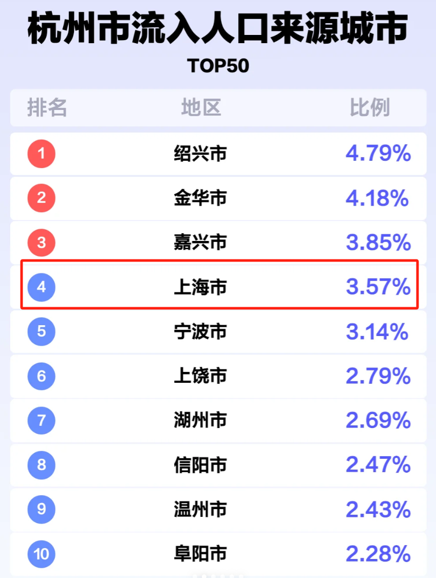 杭州最大的人才來源地,不是什麼周邊浙江的縣城,也不是什麼如安徽和河南這樣的人口流出大省,居然是上海和北京