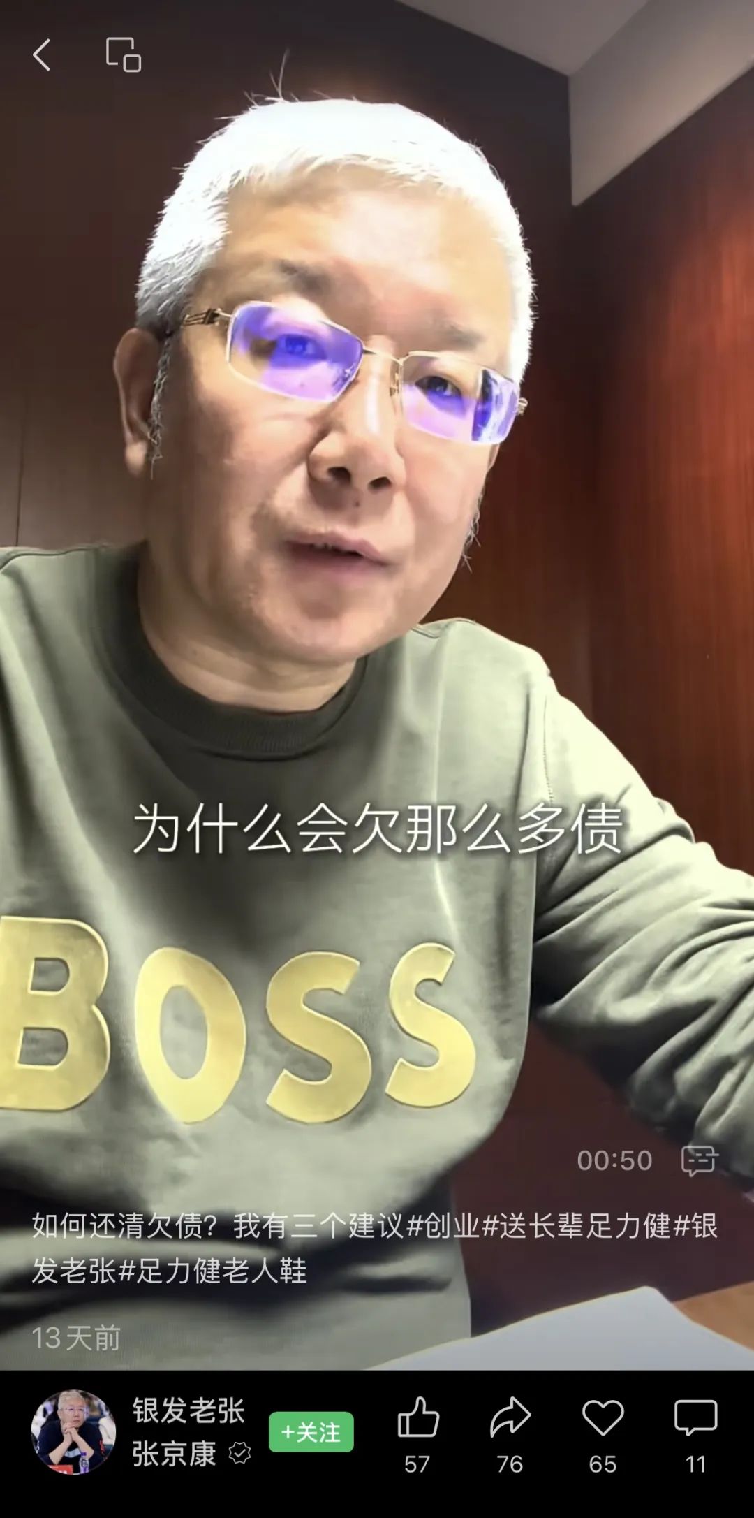 最近,足力健創始人張京康在自己的賬號上發了一條視頻,教大家如何還債。