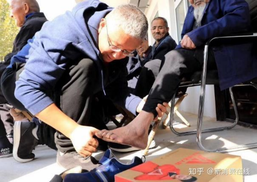 老年人對鞋有什麼需求?張京康走進公園、社區、養老院,親手摸過上千位老人的腳,發現老人腳變形、腳背變高、腿腳無力等問題,找出來他們對穿鞋最核心的需求是:不擠腳、不磨腳、不腳疼、不腳累。