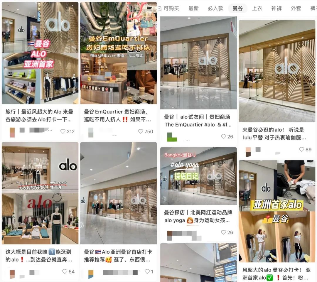 Alo在東南亞市場保持着較快的拓店增速,當國內小紅書博主們不得不通過代購或者親自前往國外購買時,渠道的稀缺性反而強化了品牌的神秘感。