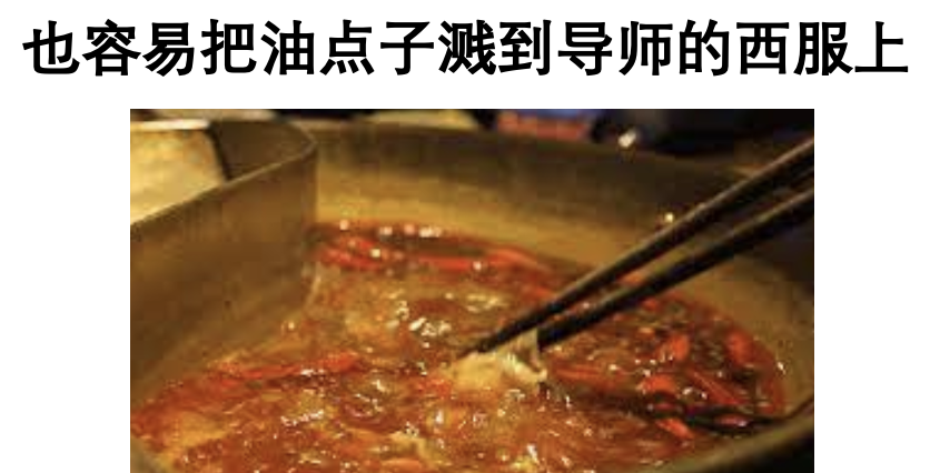 避開燒烤火鍋!燒烤一根根串串,導師咬起來費勁;火鍋中間一個大鍋,升騰的蒸氣會阻擋導師與你交流的目光。