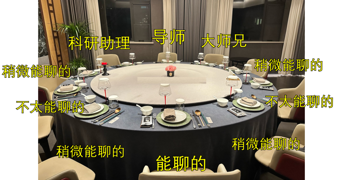 大家也不用太過緊張,聚餐,説到底也就是吃個飯,不要太過畏懼和導師的交流。放平心態就好。導師問你最近怎麼樣,你只要寫了點論文、看了點文獻,沒有白白虛度就好。就算你不愛聊天、桌上冷場也沒事,聚餐時,你的科研實力就是永恆的通行證。