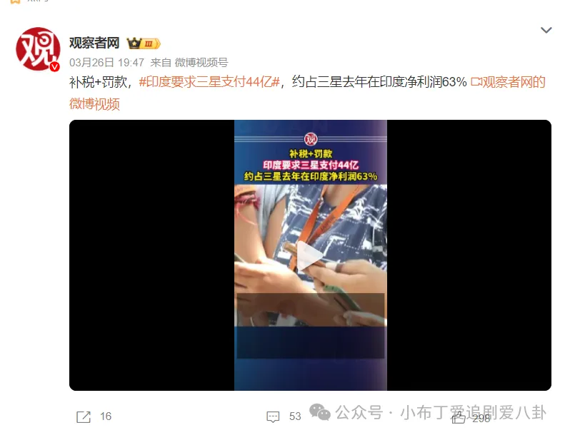 最近有一個倒黴企業,據路透社報道,印度政府命令顯示,印度已要求三星公司及其在印度的高管補繳 6.01 億美元的税款和罰款,以彌補其在關鍵電信設備進口過程中逃避關税的行為。