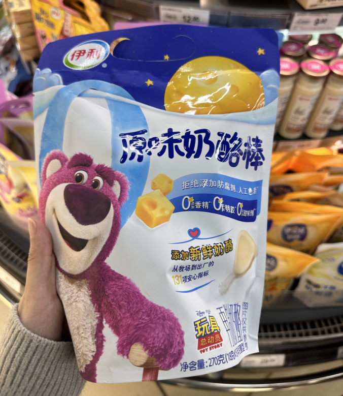 就拿伊利這款原味奶酪棒來説( 不是針對伊利,很多廠商都是如此 ),正面封面一個大大的 “ 0 ” 的圖樣元素,跟着 “ 0 香精、0 明膠、0 甜味劑 ” 三重小標識,一看就給人一種很乾淨很健康的感覺。