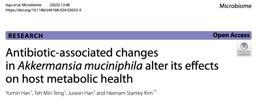 參考文獻:Han Y, Teng TM, Han J, Kim HS. Antibiotic-associated changes in Akkermansia muciniphila alter its effects on host metabolic health. Microbiome. 2025 Feb 7;13(1):48. doi: 10.1186/s40168-024-02023-4.