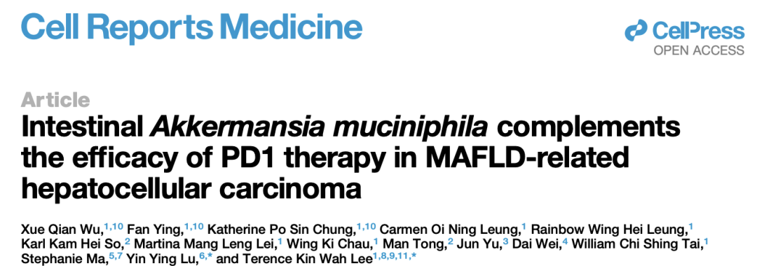 參考文獻:Wu XQ, Ying F, Chung KPS, Leung CON, Leung RWH, So KKH, Lei MML, Chau WK, Tong M, Yu J, Wei D, Tai WCS, Ma S, Lu YY, Lee TKW. Intestinal Akkermansia muciniphila complements the efficacy of PD1 therapy in MAFLD-related hepatocellular carcinoma. Cell Rep Med. 2025 Jan 21;6(1):101900. doi: 10.1016/j.xcrm.2024.101900.