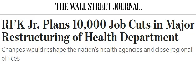 肯尼迪在週四表示,該機構將裁減1萬名全職員工,這些員工分佈在負責應對疾病暴發、審批新藥、為最貧困的美國人提供保險等工作的各個部門。此舉將使衞生部每年節省約18億美元,員工人數將從8.2萬人減少到6.2萬人。在被裁減的2萬名員工中,有一半選擇買斷或提前退休,而1萬人將失去工作。