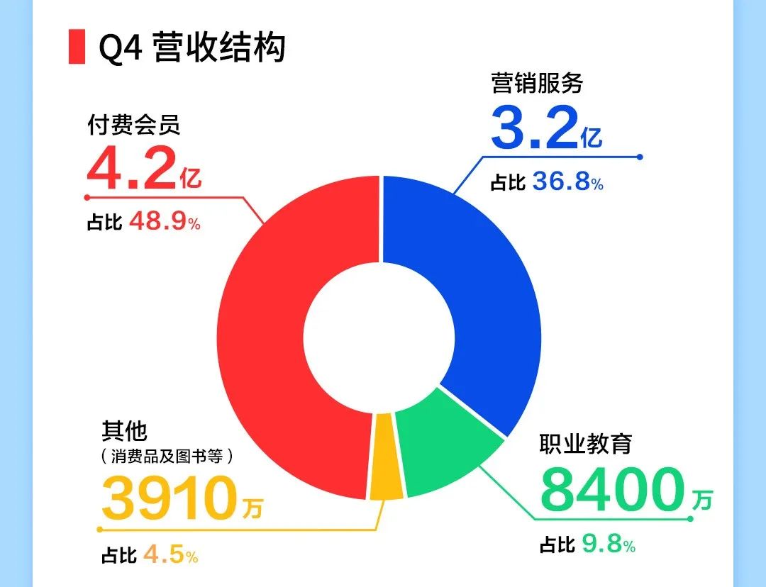 第四季度付費會員收入佔比達48.9%,成為第一大收入來源。