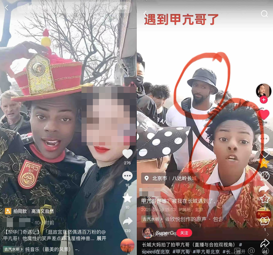 爬長城遇到中國人直播,“ 甲亢哥 ” 直接一套E人社交,一起合照,牽手唱歌,轉頭一看,鏡頭裏美顏、美白、磨皮、瘦臉拉滿,自己都要不認識自己了。