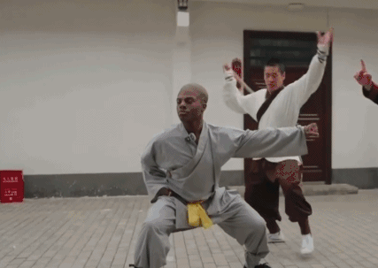 於是,想要求得真經的 “ 甲亢哥 ” 在這個院子裏,學到了繩鏢,幾招少林招式和鐵布衫,學習鐵布衫的時候,“ 甲亢哥 ” 一邊連吃三棍,一邊喊 Master!