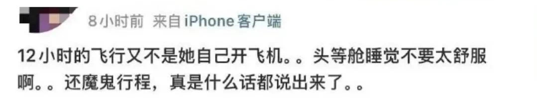 一位路人網友,只不過以普通人的感受去點評,“坐12個小時飛機,還是頭等艙”,那不就是很普通的事情嗎,比打工人舒服太多了。
