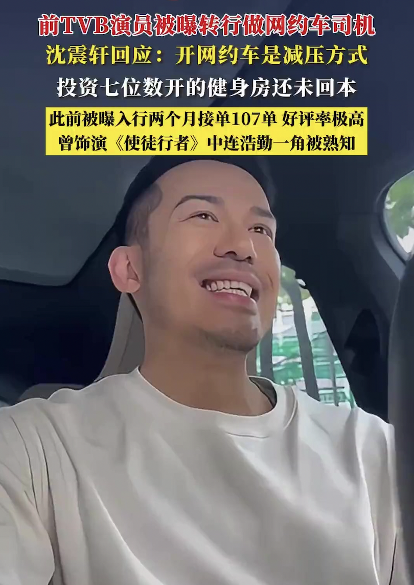 TVB藝人沈震軒為了謀生,轉行去開網約車了。