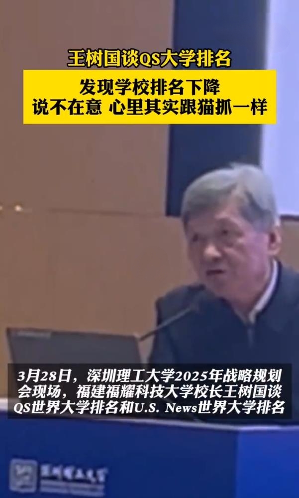 3月28日,廣東深圳,深圳理工大學2025年戰略規劃會現場,福耀科技大學校長王樹國談QS世界大學排名和U.S. News世界大學排名。他説:“校長太難了,每到QS和U.S. News出現排行榜的時候,實際上説是不在意,學校排名下降,心裏急得跟貓抓一樣。”