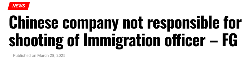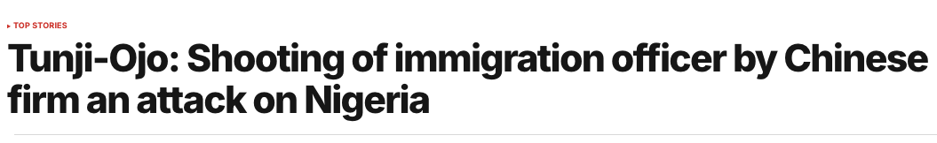 幾周前,尼日利亞北部尼日爾州的一名移民局官員中槍受傷倒地,地點在中資企業附近,這本來是一場普通的執法事故,隨着本地媒體的報道,事情就朝着奇怪的方向發展了。