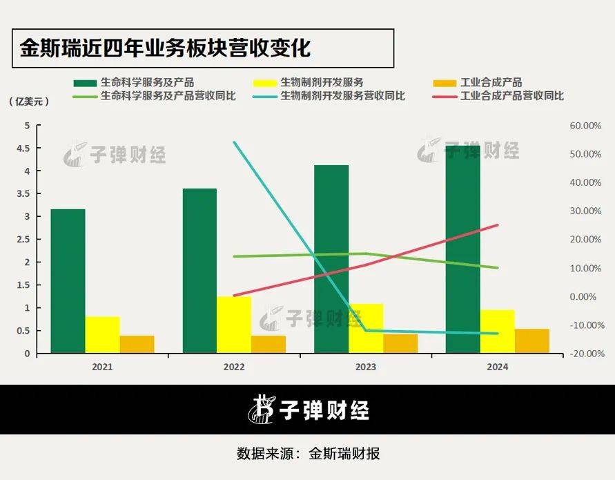 但近四年,生命科學服務及產品板塊營收增速有明顯放緩,2024年實現營收4.55億美元,同比增長10.2%,營收增速較2023年下滑了5個百分點;經調整毛利率由上一年的54.4%略降至52.2%,長期盈利能力面臨一定挑戰。