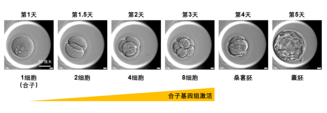 連接這兩個關鍵轉折點的,是被稱為**“合子基因組激活(ZGA)”**的重要事件。胚胎會在受精後逐漸開始打開自主基因表達系統的開關,此後胚胎不再依賴卵細胞內儲存的RNA指令,而是開始用自己的基因指導發育。
