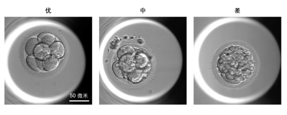 胚胎學家在實驗室顯微鏡下觀察第3天的胚胎時,會通過計算胚胎裏的細胞數量、碎片比例、分裂對稱性等指標,將胚胎劃分為三種等級:優、中、差。