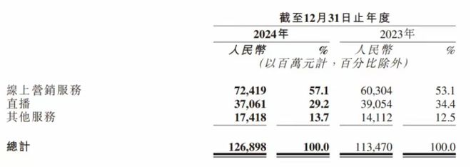 但直播業務全年收入同步下降5.1%至2024年的371億元,第四季度收入為98億元,同比下降2.0%;其他服務年收入為174.18億元,同比增長23.4%。