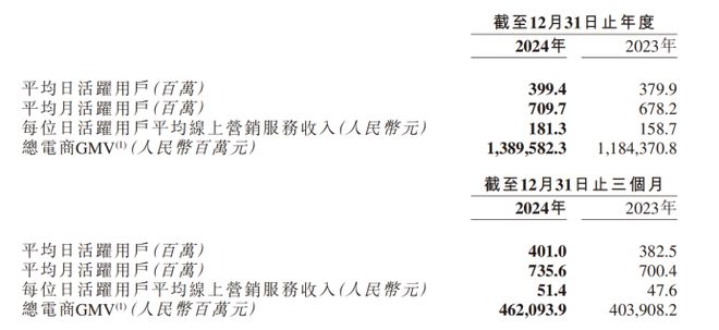 先就電商而言,快手2024全年GMV為13896億元,第四季度同比增長14.4%至4621億元,電商月活躍買家數也同比增長10.0%至1.43億。