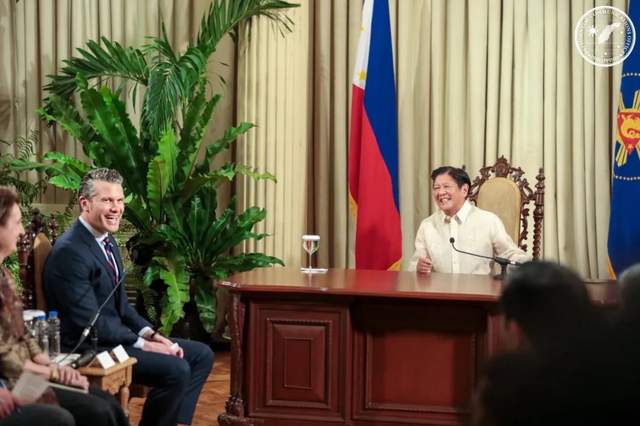 總之,赫格塞斯對着小馬科斯又是一頓承諾,重申了所謂的“美菲共同防禦條約”,並且許諾給菲律賓增加軍事支持,包括反艦導彈、無人機等武器,還聲稱要對菲軍進行培訓。