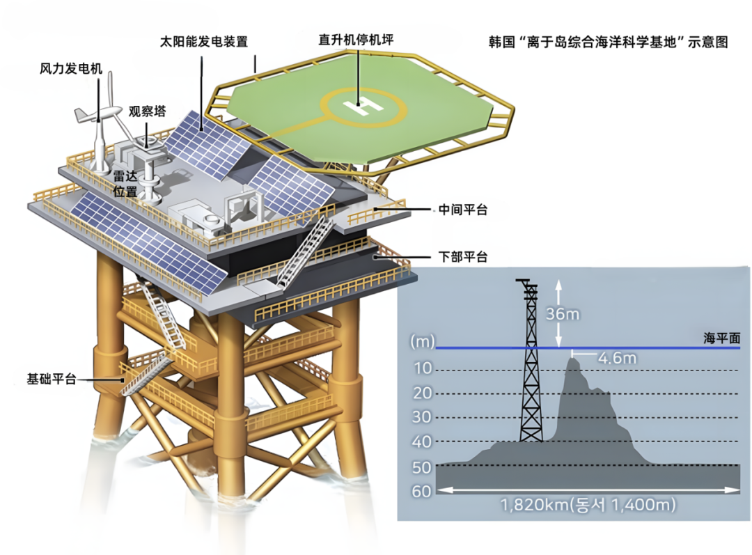 時間快進到1995年,韓國開始顯露出更大的野心。這一年,韓國政府宣佈計劃在蘇岩礁上方建設一座“離於島綜合海洋科學基地”。這不再是簡單的浮標,而是要將鋼筋水泥嵌入這片水下暗礁的上空。