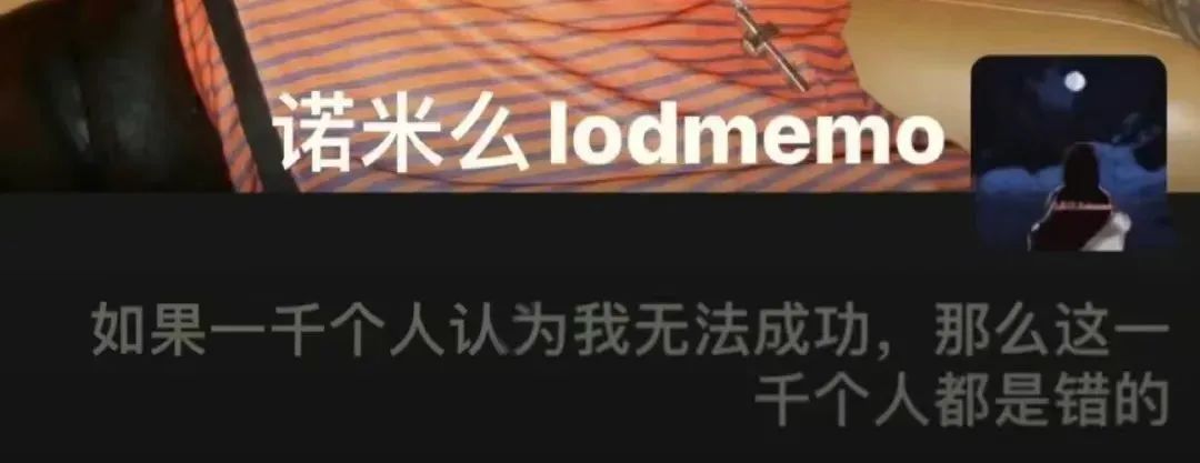 有粉絲曬出諾米微信朋友圈的截圖,簽名處寫着:“如果一千個人認為我無法成功,那麼這一千個人都是錯的”。