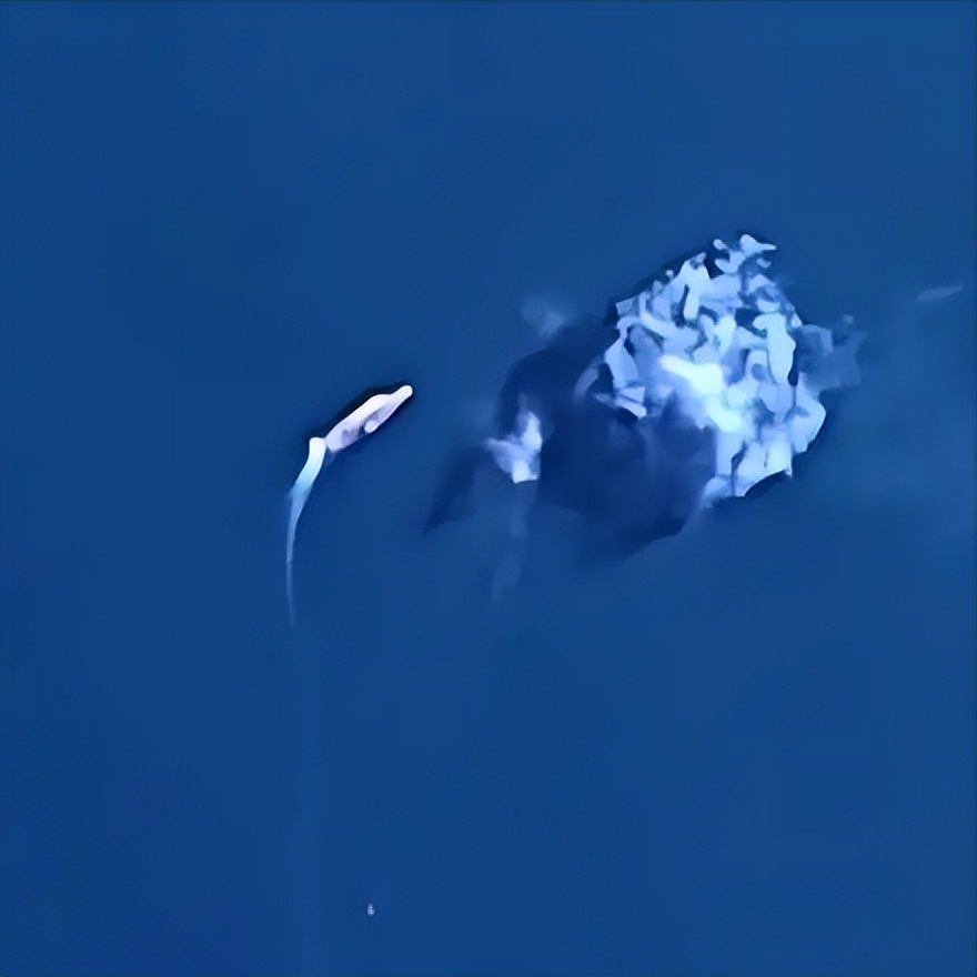 在這次巨大的爆炸中,艦體旁邊被炸出巨大“浪花”,翻滾奔湧的滔天巨浪體積甚至比福建艦還要大上數十倍。