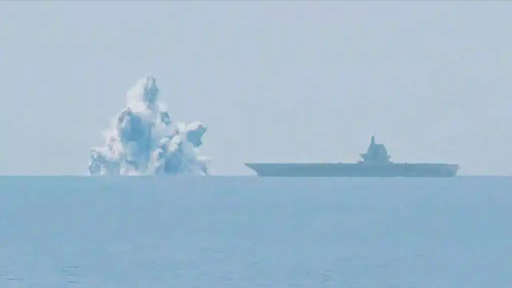 有媒體報道指出,這是福建艦在進行抗衝擊試驗,這也是一艘新軍艦在服役前必須進行的一次重要試驗。