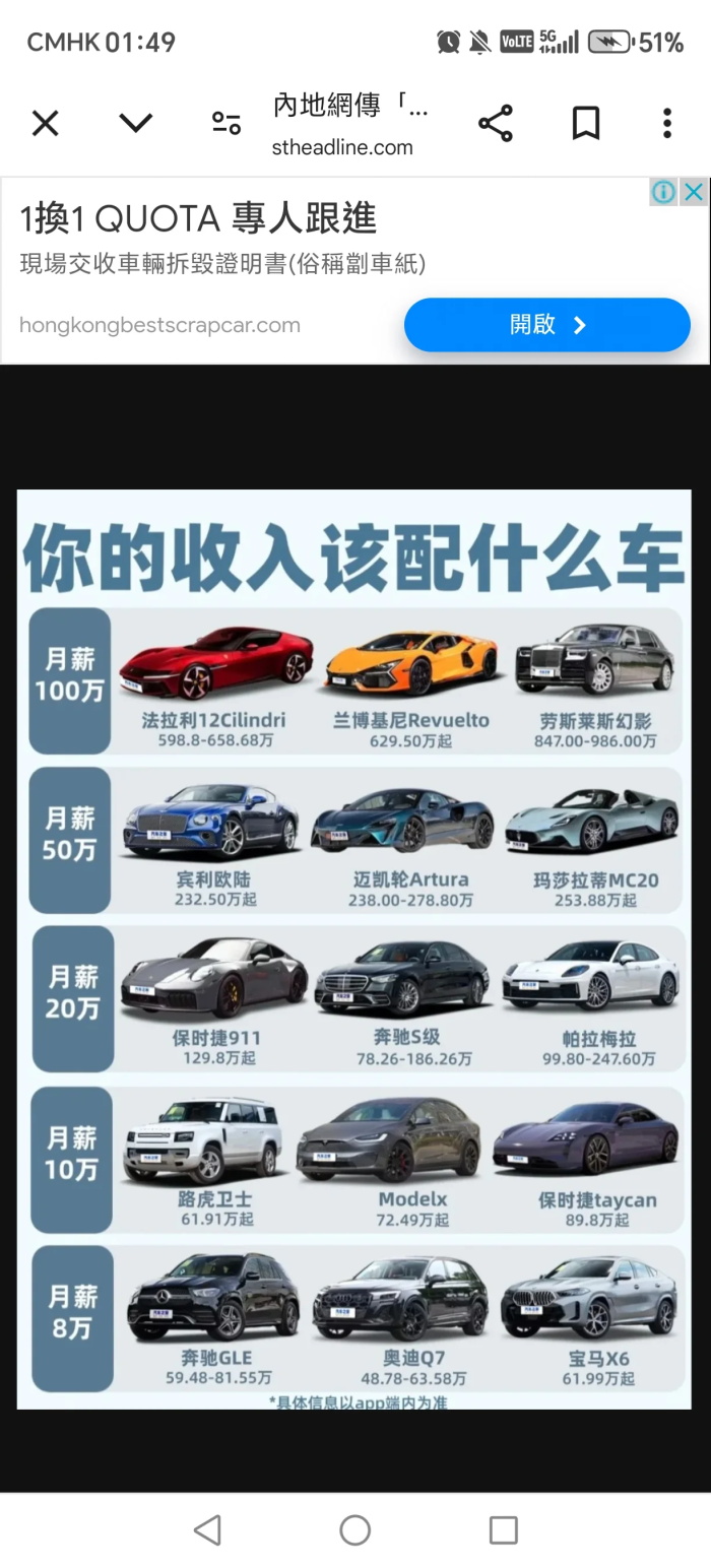 “你的收入該配什麼車?”,最近內地和香港網絡上都有在討論這個很現實的話題_風聞