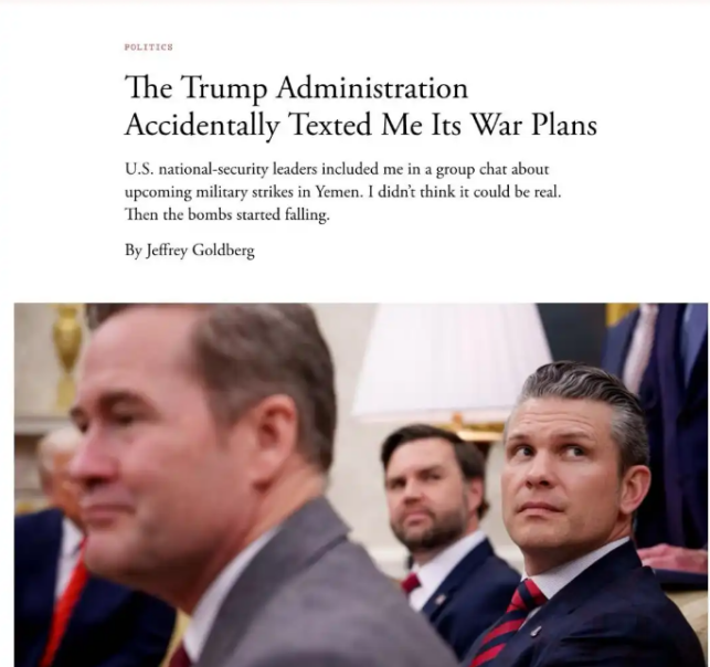 希拉里針對的事是《大西洋月刊》主編戈德伯格被意外添加到特朗普國家安全團隊策劃襲擊也門的羣聊中。在加密通訊軟件Signal上美國國家安全顧問邁克·沃爾茨、國防部長皮特·海格塞斯、副總統萬斯、中央情報局局長拉特克利夫等18位高管在討論有關襲擊也門胡賽武裝將使用的武器、目標和時間的具體信息。不少專業人士表示使用Signal討論即將採取的軍事行動嚴重違反了有關處理敏感國防信息的保密程序。