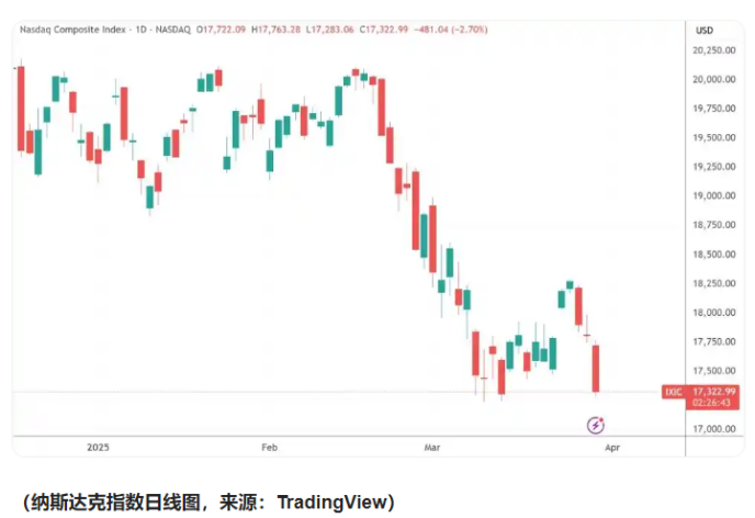與特朗普第一屆任期不同的是美國的股市沒有迎來上漲,反而上演了一波大跳水。從2月19日的高點開始,美國標普500指數一路狂跌,短短幾周內市值蒸發了3.4萬億美元。特朗普表示,將在對汽車加徵關税外很快將宣佈對藥品等也加徵關税後資金紛紛湧入避險資產,國際金價再創新高,美債收益率全線收跌。大型科技股普跌,谷歌跌4.88%,臉書跌4.29%,亞馬遜跌4.29%,特斯拉跌3.51%,微軟跌3.02%,,銀行股普跌,摩根士丹利跌3.08%,美國銀行跌3.08%,高盛跌2.83%。美國3月密歇根大學消費者信心指數終值為57,初值57.9,創逾兩年新低;未來一年通脹預期躍升至5%,創2022年11月來最高水平;長期通脹預期躍升至4.1%,創32年新高。密歇根大學消費者信心指數已連續兩月創下新低。