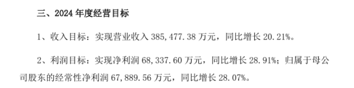 千禾味業暫未披露2024年業績預告。不過,按照公司此前披露的經營目標:2024年實現營業收入38.55億元,同比增長20.21%;實現淨利潤6.83億元,同比增長28.91%;歸屬於母公司股東的經常性淨利潤6.79億元,同比增長28.07%。