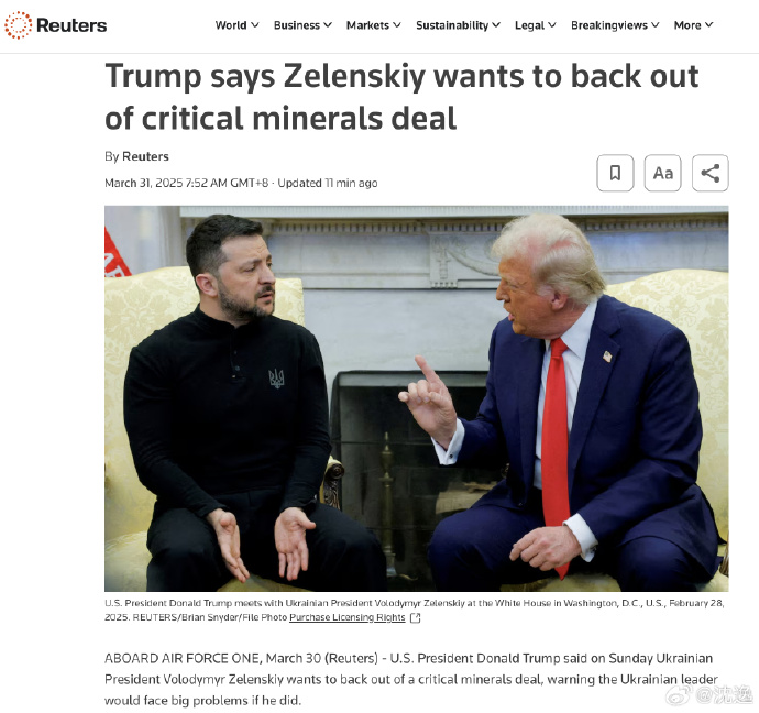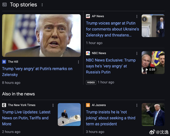 從最新的兩條新聞看,特朗普推進俄烏停火的努力遭遇顯著挫敗,其個人性格特徵中無法適應長期複雜微妙的地緣政治衝突的特點,正在比較明顯的暴露了出來。不出意外的話,俄烏衝突將因此在外交博弈中展現出更加明顯的美國同時大戰俄羅斯與烏克蘭的混亂特徵。