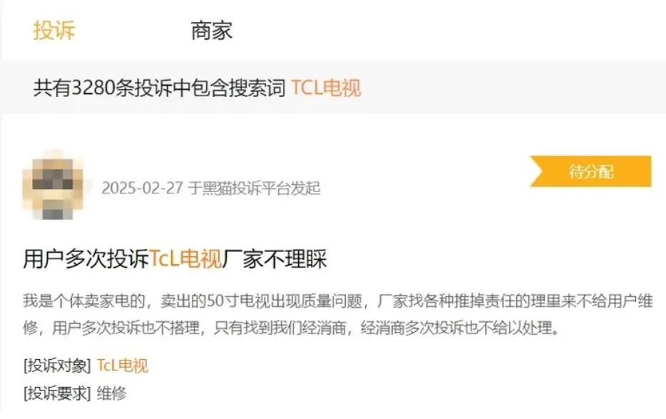 在售後服務端,黑貓投訴平台數據顯示,TCL相關投訴解決率僅為67%,遠低於行業85%的平均水平。典型案例包括X11H系列電視的"百級分區背光延遲"問題,用户從報修到工程師上門平均耗時4.7天,而小米同類服務響應時間已壓縮至1.5天。這種服務體系脱節,正在消解技術突破帶來的品牌溢價。