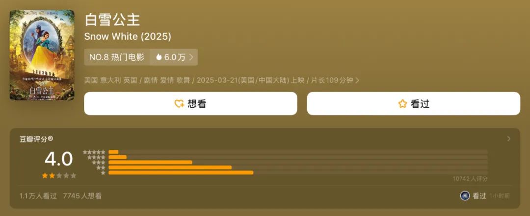 至於皇后嫉妒白雪公主的美貌——這確實是原著設定,但在2025年還沿用這種“女人就得為美貌爭風吃醋”的劇情,就真的讓人想捂臉嘆氣。