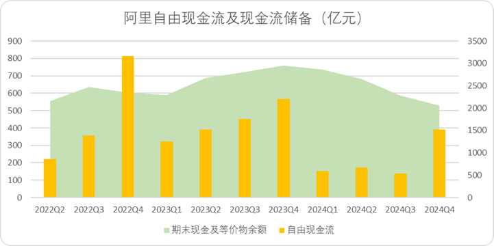 就在年報期,阿里公佈了資本開支的計劃,也與去年四季度資本開支的動向契合,未來三年將投入3800億用於AI和基礎設施建設,過去三年阿里自由現金累計3819億。