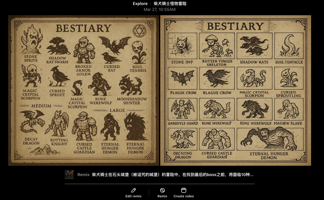 在 “ 柴犬騎士勇闖破碎王國 ” 的概念設計中,GPT-4o 展現了精準的指令遵循、驚人的圖像一致性,這種能力,正是將技術從工具昇華為創作夥伴的關鍵所在。可以説 GPT-4o 為創作者打開了一扇通向想象的大門,看來 Sam Altman 沒有説的太誇張。
