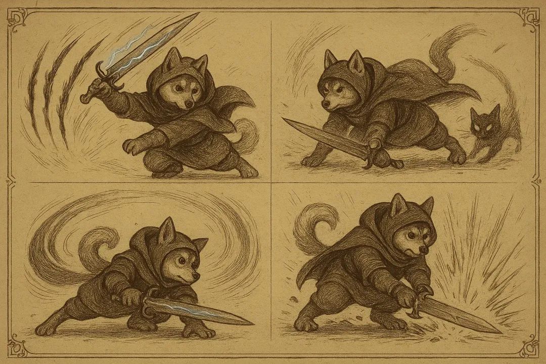 為了測試 Sam Altman 是不是在吹牛,知危編輯部做了一個深度測評,用一個主題和多輪對話,將上面提到的特點一次性測試完成。簡單來説,就是開局一隻柴犬,用 Sora ( 也就是 GPT-4o 的圖片生成能力 )來做一箇中世紀 RPG 遊戲的概念設計。