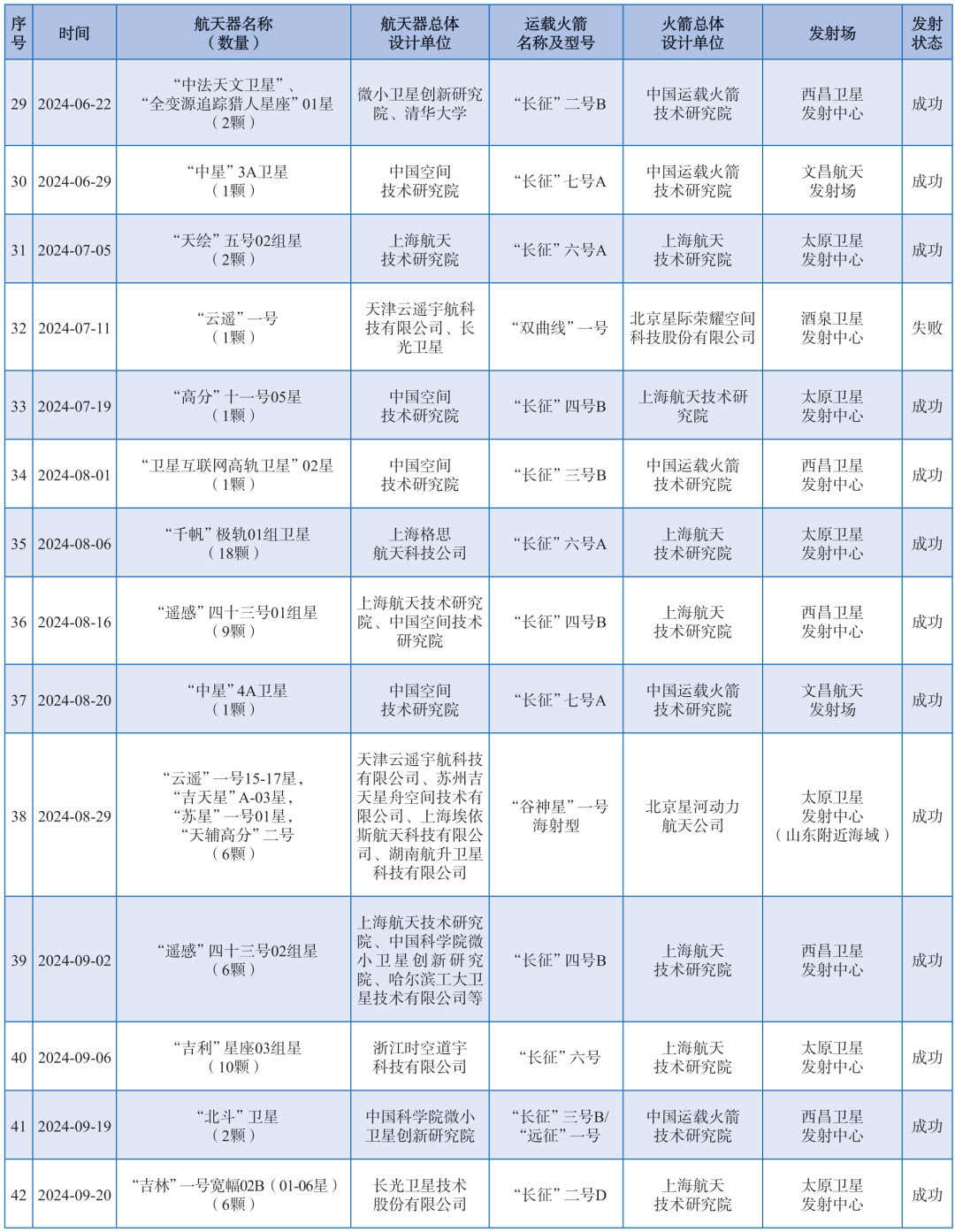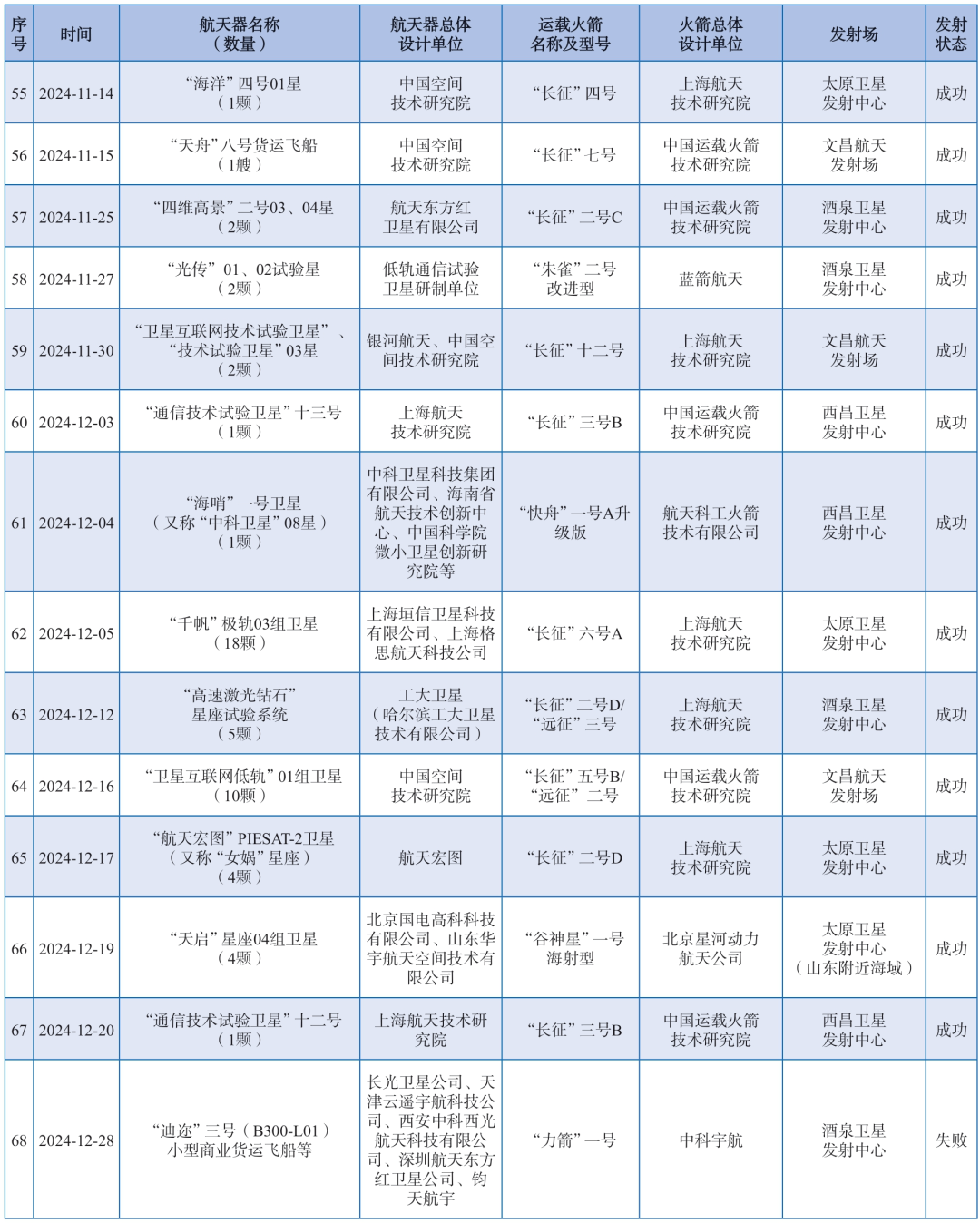 2024年我國全年共執行68次火箭發射任務,其中航天科技集團的“長征”系列火箭承擔了49次發射,比2023年的47發增加了2發,創造了新紀錄。