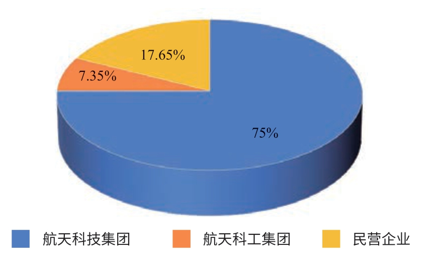 圖1 航天科技集團、航天科工集團及民營企業火箭發射佔比圖