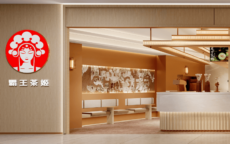 當整個茶飲行業集體打起灰調極簡的“安全牌”,霸王茶姬在標準化與個性化之間找到平衡點,通過門店設計的視覺符號與色彩敍事強化消費者認知,將品牌空間不僅視作品牌“皮膚”,更作為營銷的敍事“劇場”。