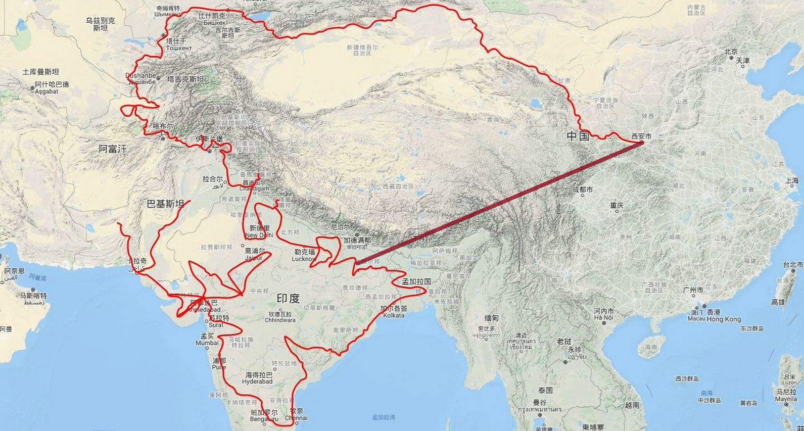 有個現成的例子,就是唐僧的取經之路。當時,是從唐朝的都城長安,也就是今天的西安,前往印度比哈爾邦的那爛陀寺。