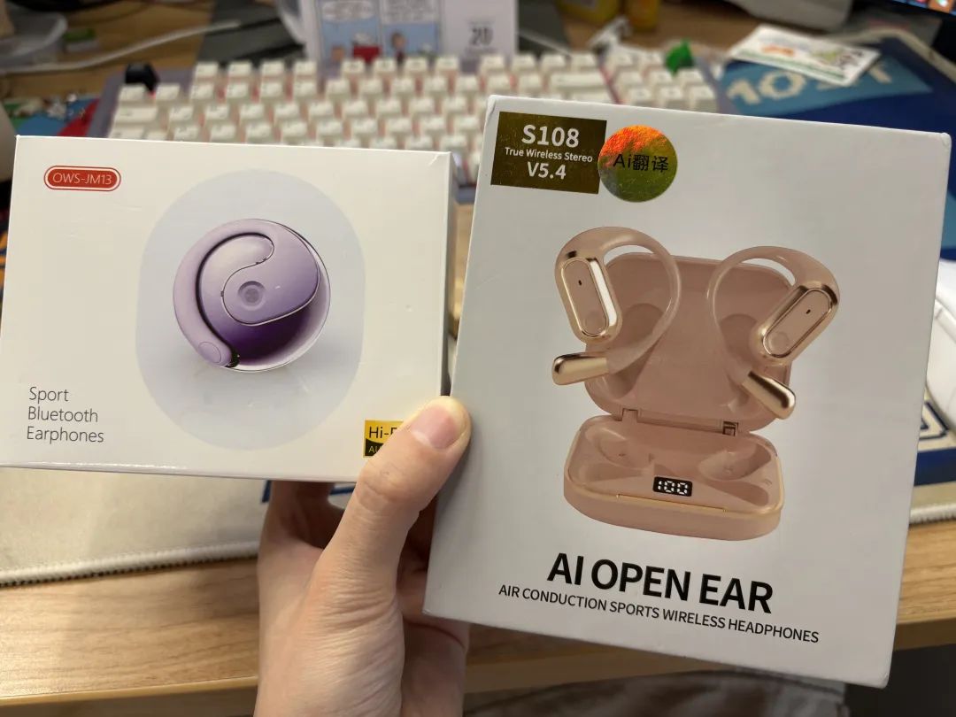 而且,為了橫向對比,我還買了兩個不同檔次的 AI 耳機。一個是 58 元,另一款 158 元。
