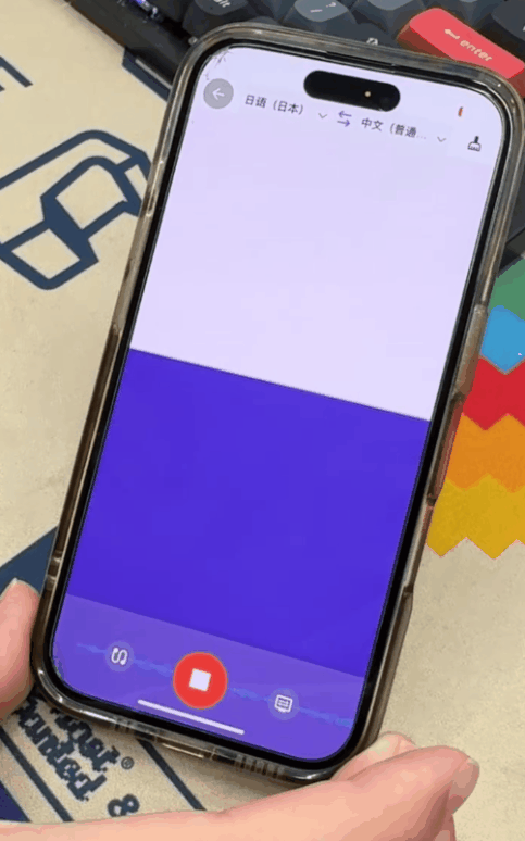 因為如果你想要翻譯,首先需要選定語種,比如英譯中。其次就是,要把 APP 裏的錄音鍵打開,才能開始聲音捕捉。