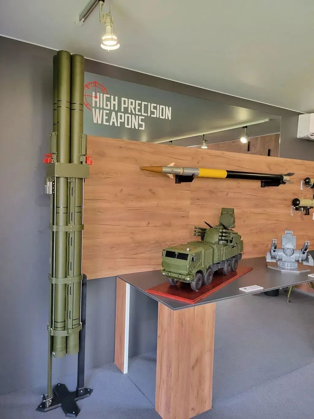 在2022年的“軍隊”展會上,俄軍展出了9M335/57E6導彈的兩種改進型。其中一種不用説了,就是我們所謂的“釘子”小導彈,專門用來打無人機的,之前一個導彈發射筒裏可以裝四發,用火力範圍和速度來換火力密度和作戰持續能力,這是一種特化的反無人機導彈就不多説了。